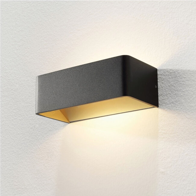 Meer glans zonder onrust: dat is precies wat de Artdelight Mainz in zwart/mat goud aan de wand toevoegt. Deze uitvoering combineert de strakke rechthoekige vorm van de serie met een donker exterieur en een zachtere goudtoon die het armatuur visueel rijker maakt. Daardoor ontstaat een wandlamp die modern blijft, maar tegelijk meer luxe en diepte geeft in ruimtes waar materiaalbeleving mee mag tellen.