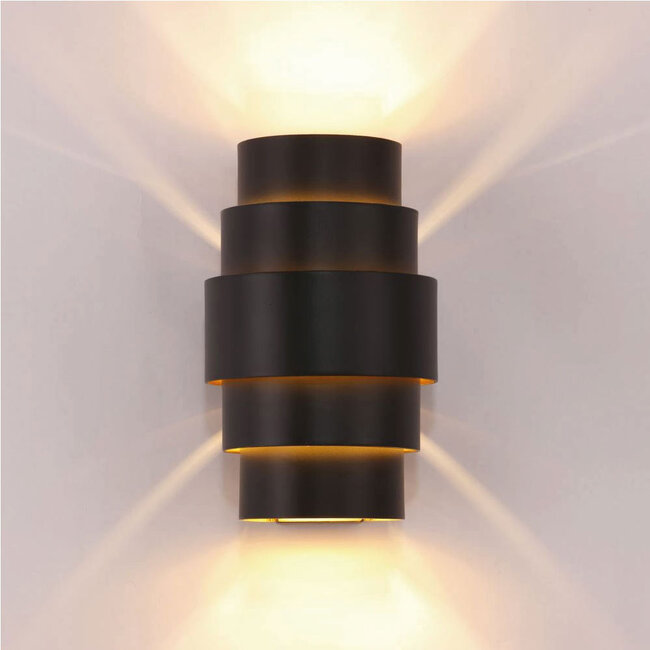 Een wandlamp mag best decoratief zijn, zolang het ontwerp de ruimte niet onrustig maakt. Precies daarin onderscheidt de Artdelight Rolls in zwart/goud zich. De gelaagde cilindervorm geeft deze uitvoering een duidelijk designkarakter, terwijl de combinatie van zwart en goud juist voor warmte en diepte zorgt. Daardoor voelt deze wandlamp uitgesproken aan, maar blijft hij toch beheerst genoeg voor interieurs waarin sfeer, luxe en strakke vormgeving met elkaar in balans moeten zijn.