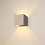 Subtiliteit maakt deze uitvoering direct anders dan de warmere of donkerdere varianten. De Artdelight Gymm in champagne combineert zijn kubusvorm met een geanodiseerde afwerking die zacht, licht en verfijnd oogt. Daardoor blijft het armatuur zichtbaar als vormobject, maar zonder hard contrast te maken op de wand. Juist in interieurs waar nuance belangrijk is, levert dat een bijzonder aangename balans op.
