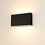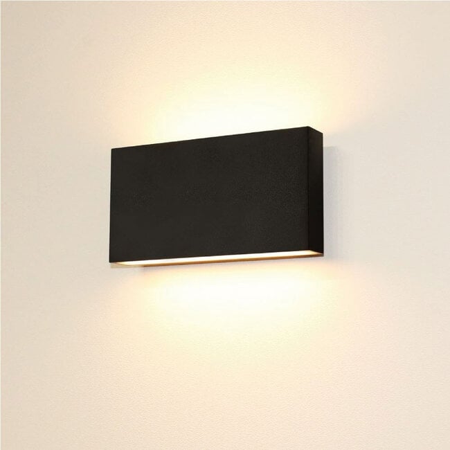 Wat deze zwarte uitvoering sterk maakt, is de manier waarop het licht omhoog en omlaag uit het armatuur valt. Daardoor ontstaat een strak en architectonisch effect dat de wand meer diepte en ritme geeft. In een hal, woonkamer of badkamer zorgt dat voor een rustige basis met voldoende sfeer, terwijl dezelfde lamp buiten juist mooi werkt naast een entree, aan een gevel of bij een terraswand waar uitstraling en functionaliteit samenkomen.
