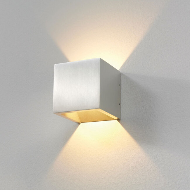 Deze Cube in aluminium komt sterk tot zijn recht in badkamers, kantoren, showrooms, entrees en buitenruimtes waar materialen zoals glas, beton, staal en lichte houtsoorten een belangrijke rol spelen. De kubusvorm geeft de wand een duidelijk ritme, terwijl de geborstelde afwerking het armatuur subtiel houdt. Daardoor wordt de lamp wel zichtbaar als object, maar nooit onnodig dominant.