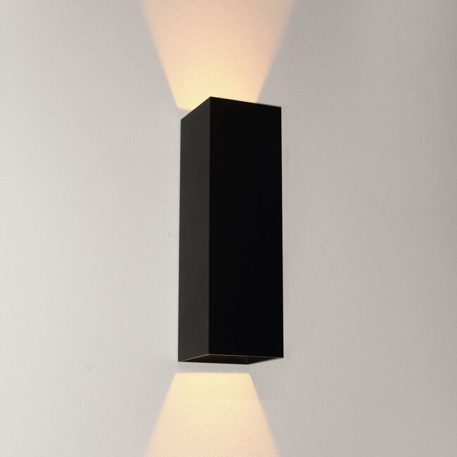 De kracht van deze Vegas 250 zit niet alleen in de zwarte afwerking, maar vooral in de combinatie van formaat en lichtbeeld. Doordat het armatuur groter is uitgevoerd dan de Vegas 150, komt het op de wand nadrukkelijker tot zijn recht en ontstaat een langer, duidelijker op- en neerwaarts lichtaccent. Met 2 x 460 lumen biedt deze variant bovendien merkbaar meer lichtkracht, terwijl de warme kleurtemperatuur van 2700K voorkomt dat het geheel te hard of te technisch aanvoelt.